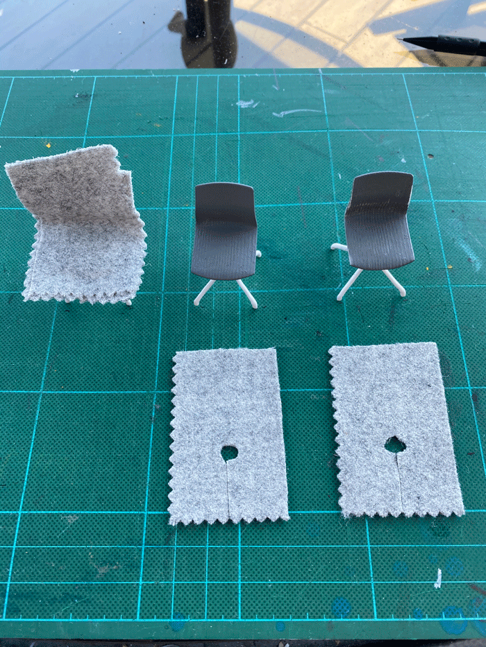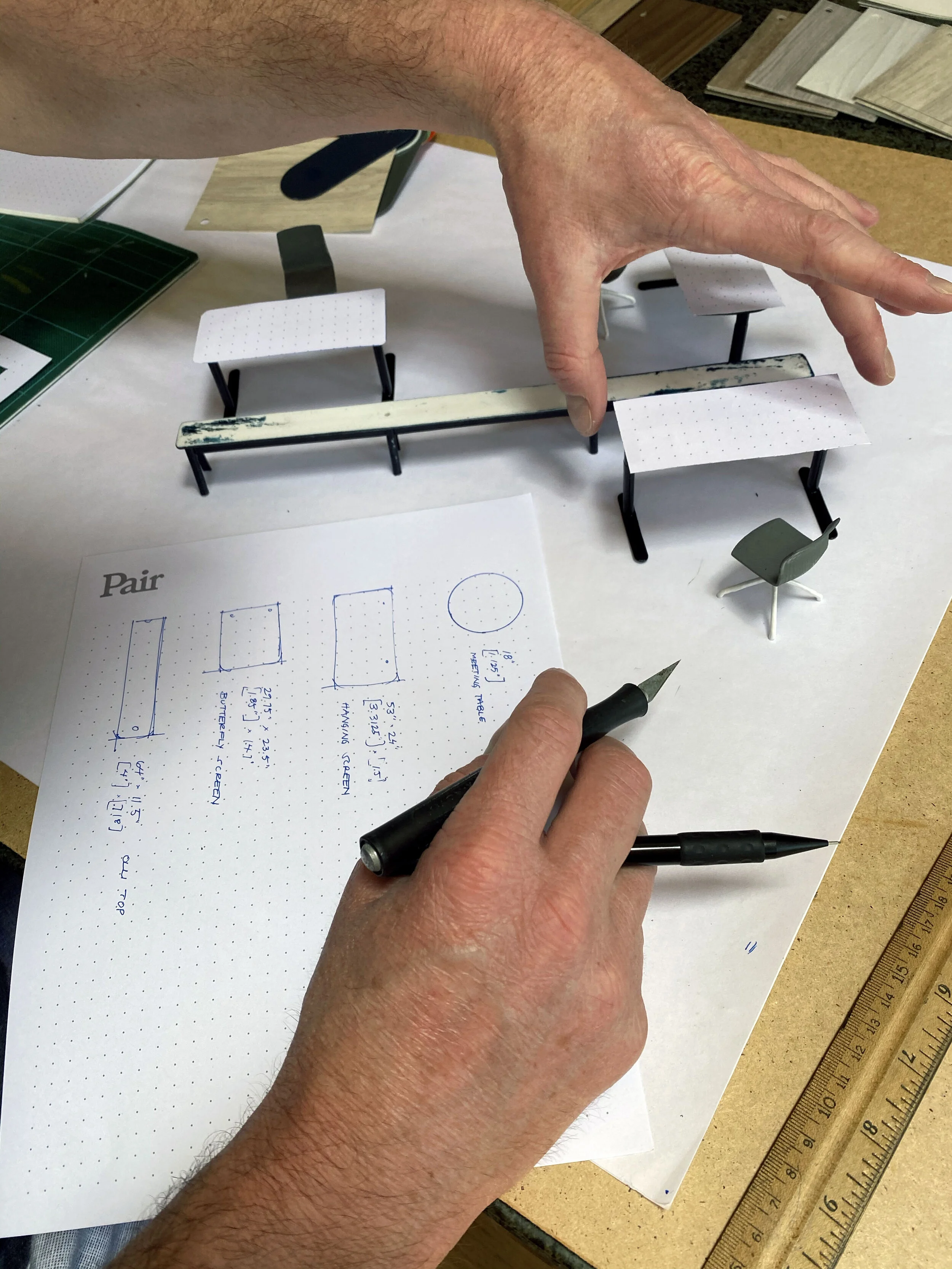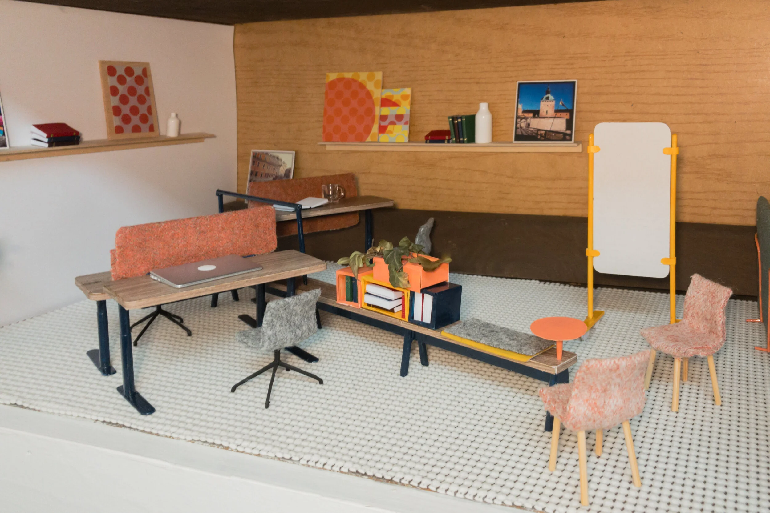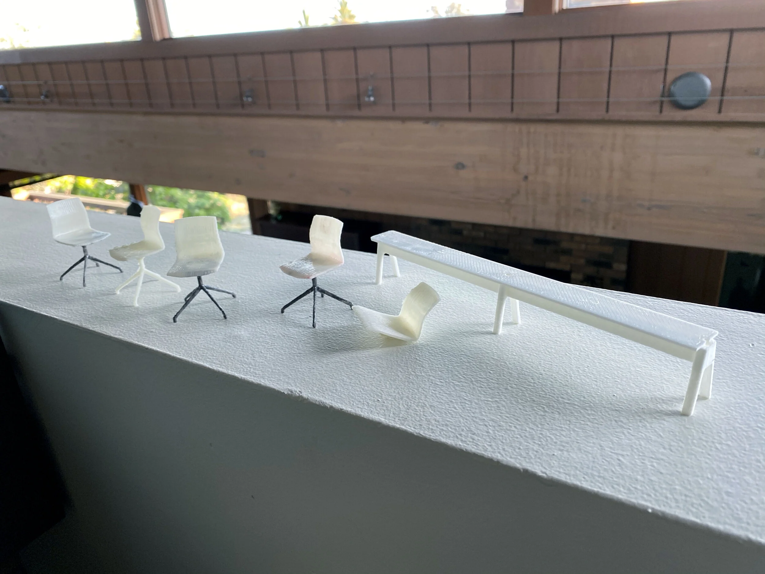 Our engineer in Austin took the lead on 3D printing Olli bases, Belay desks, and chairs. From there, he mailed them across the West Coast to our other designers to begin designing their mini WFH vignettes.