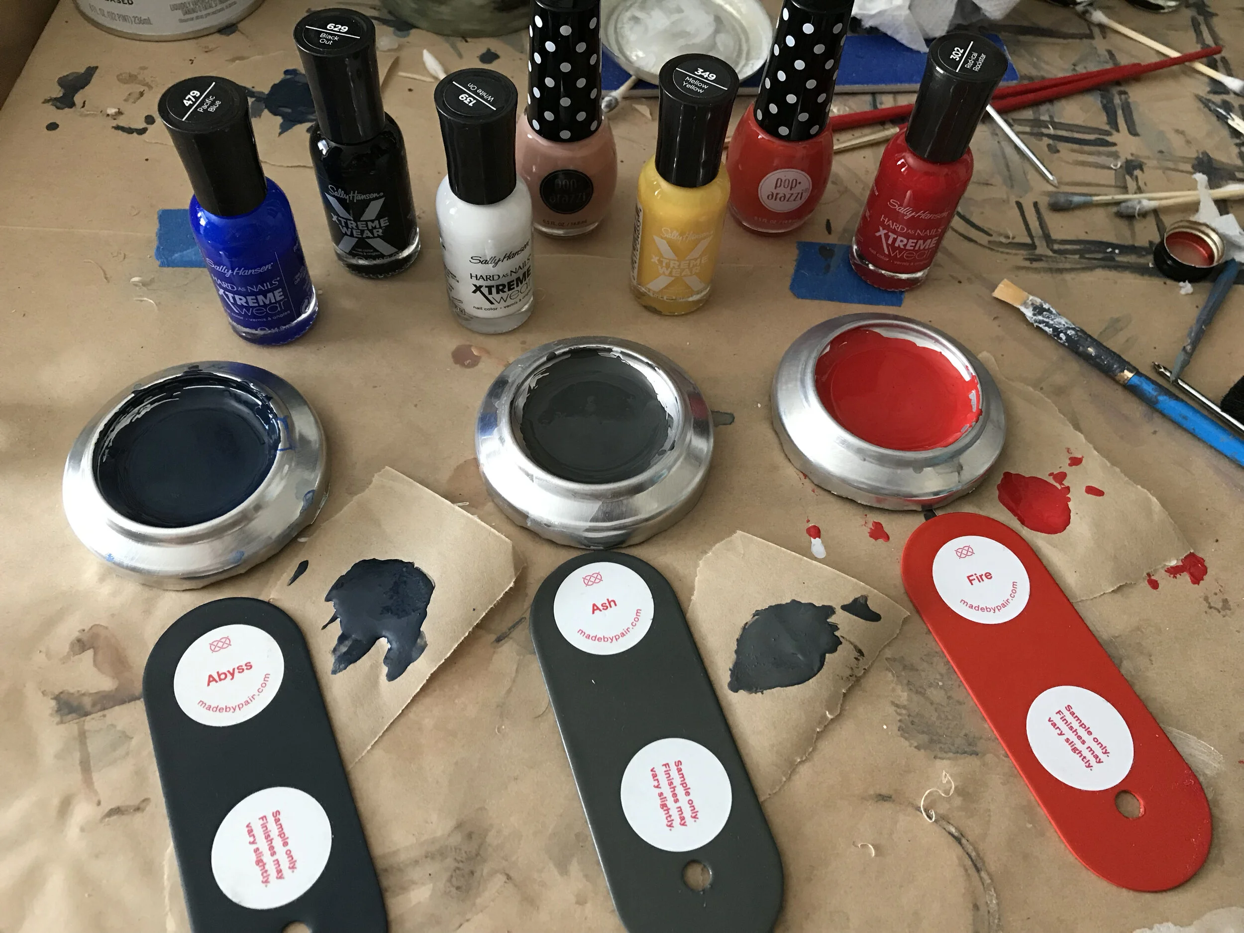 I hand mixed nail varnish color to match Pair’s Storm finish.